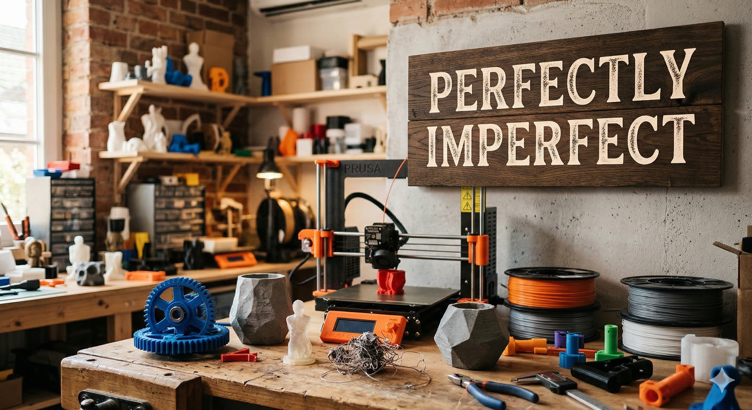 Beim 3D-Druck ist jedes Stück ein Experiment aus Hitze und Präzision. Manchmal entscheidet sich das Material für einen ganz eigenen Weg – eine kleine Linie hier, eine raue Stelle dort.